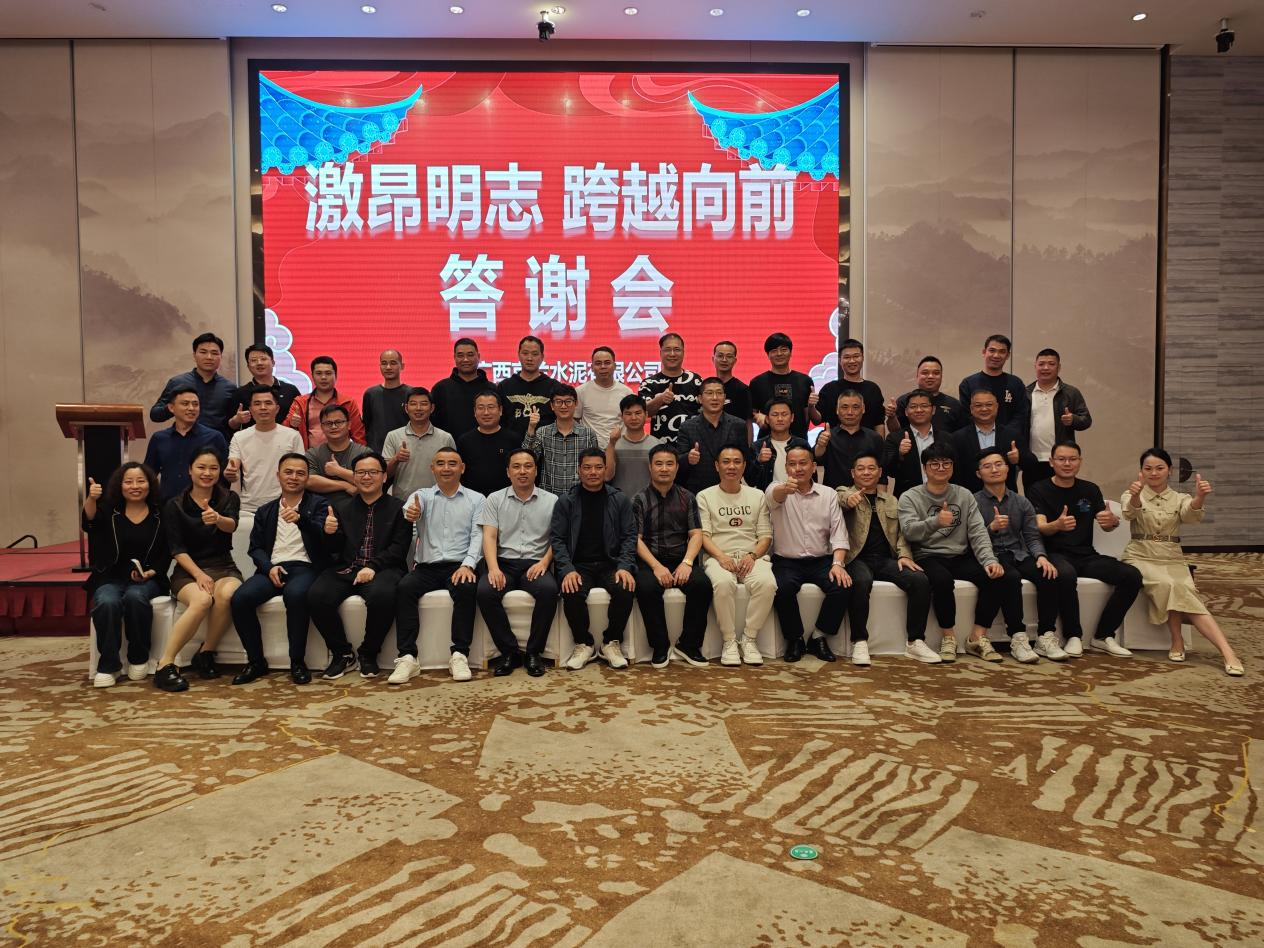 2024年2月21日,广西京兰水泥有限公司在柳州莲花山庄召开以“激昂明志,跨越向前”为主题的2023年度代理商年终总结大会暨答谢会,共有来自两广各地近20个地市、40余位合作代理商参加了本次盛会,会议在热情洋溢的氛围中成功举办。