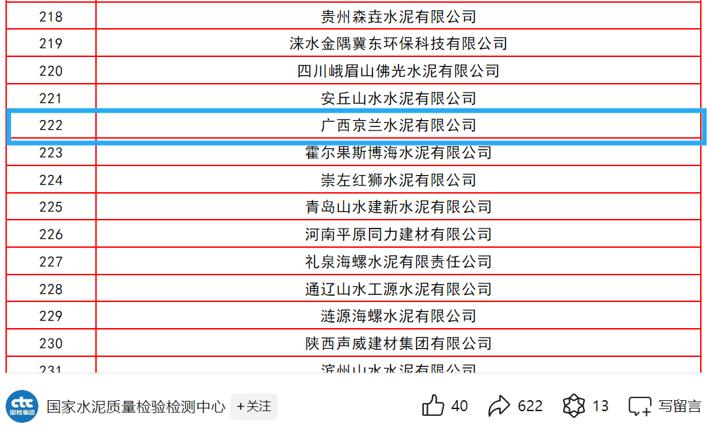 8月2日,备受瞩目的“天宝华瑞杯”全国第十九次水泥化学分析大对比获奖名单正式揭晓,在这场全国性的水泥行业质量竞技中,京兰5家水泥公司均荣列榜单。